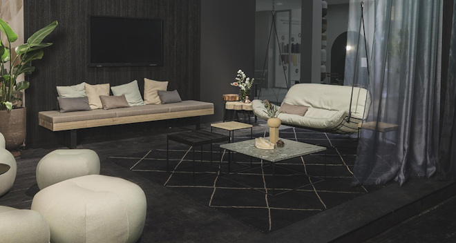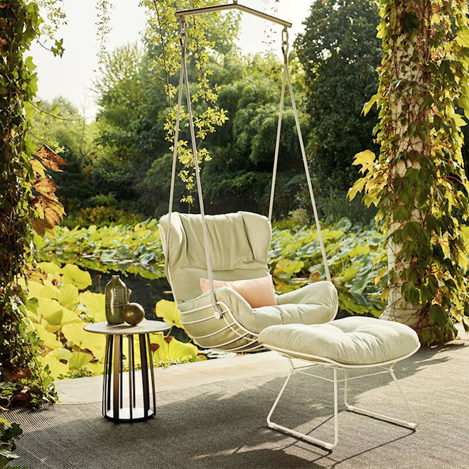 Now this is definitely a Sunday afternoon well spent! I could imagine spending hours here with friends and family here. Leyasol Rocker and Swing, both in Sunbrella fabric. The outdoor Stomp tables are made from acacia wood and available from top3 through Janua.