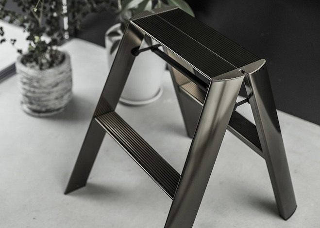 Development of Lucano began in 2007. At the time, most stepladders were silver, the colour of aluminium, which gave them a rough and unrefined appearance and made them out of place in stylish or everyday living spaces.
