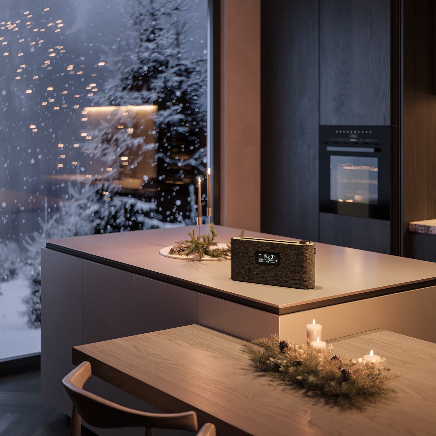 Anniversary edition DAB+ radio, bluetooth speaker and alarm clock. The Loewe radio.frequency offers state-of-the-art technology in the smallest space. The DAB+ radio offers a timeless design language with its selected materials such as the acoustic fabric specially developed by Loewe in basalt grey.