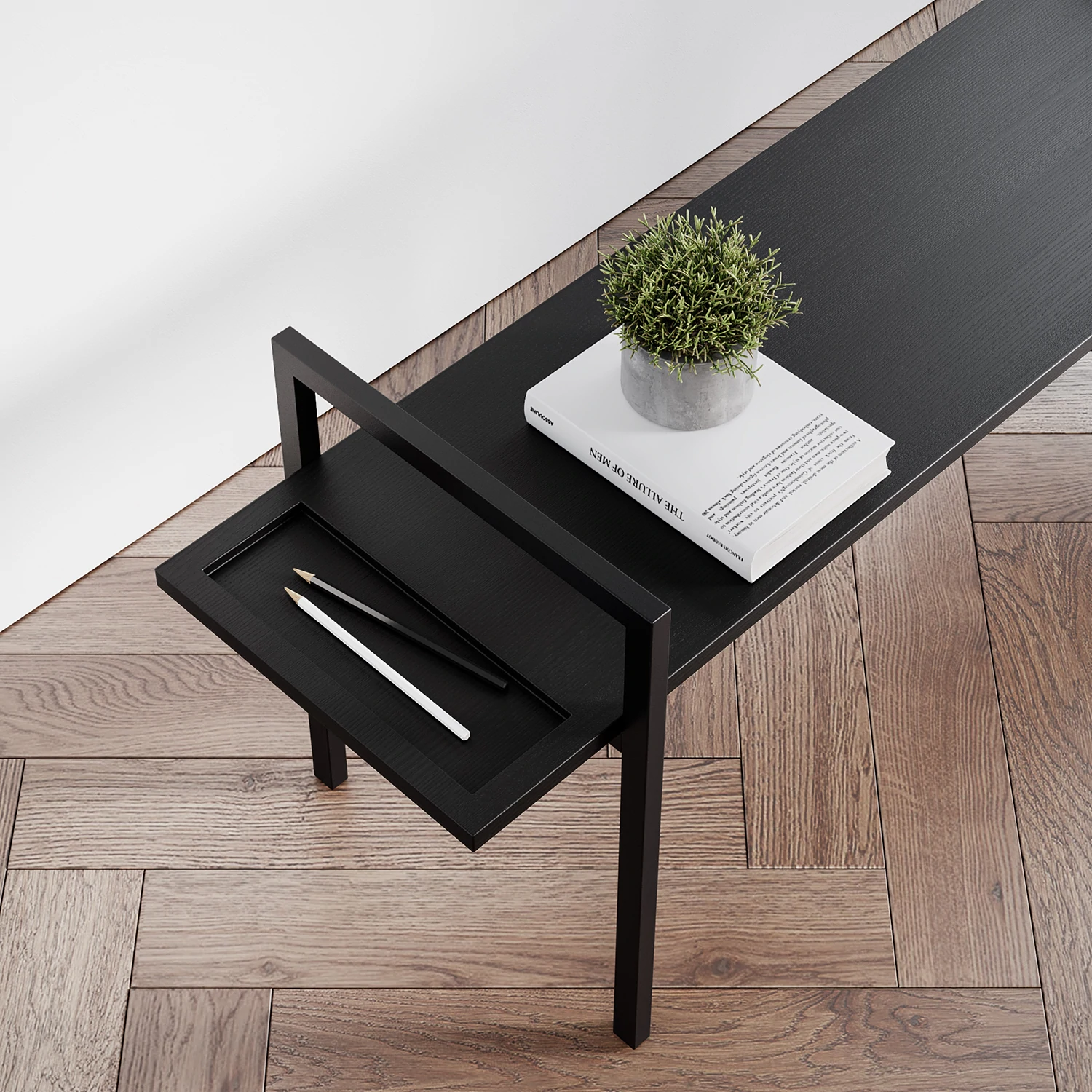 A black painted solid oak plate on a base made of a high quality steel frame makes this the perfect choice for the minimalist design lovers.