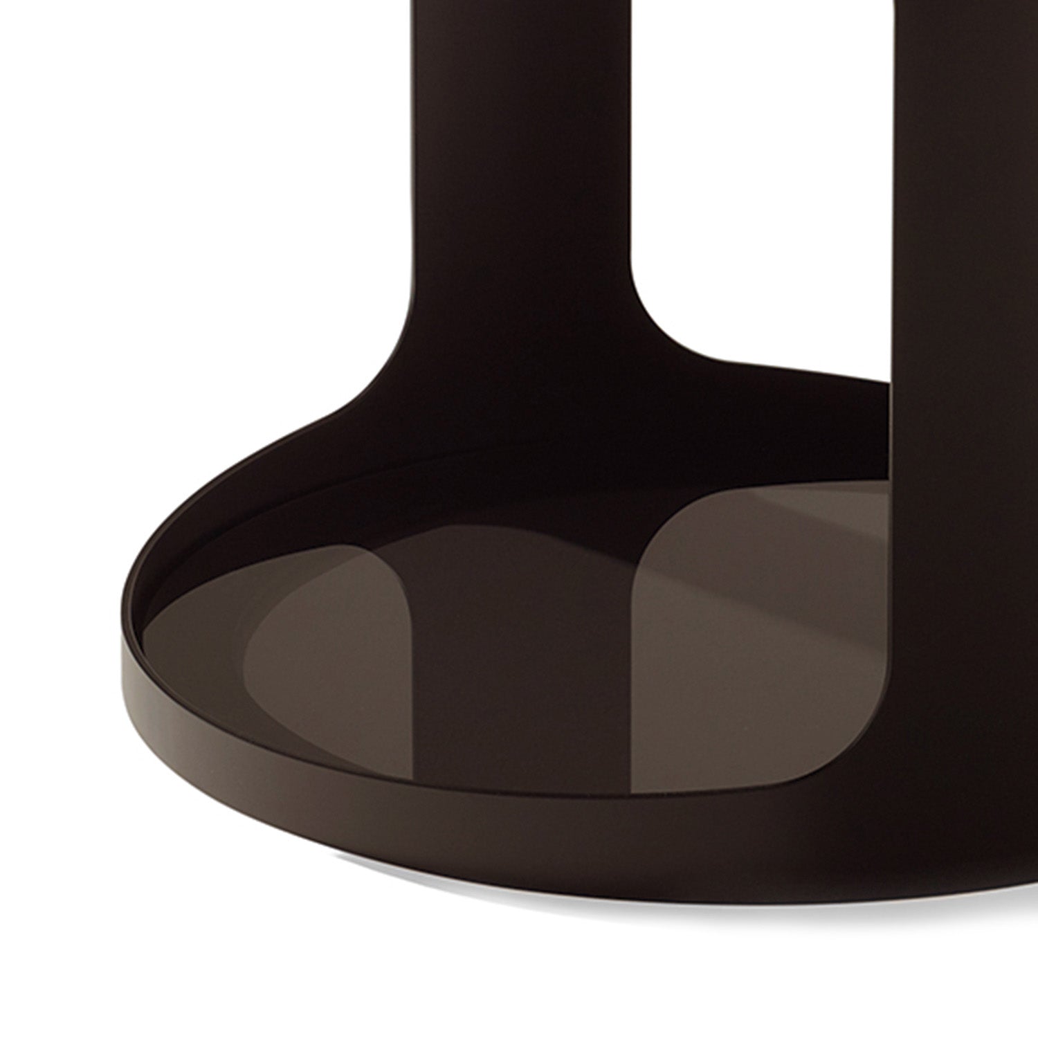 COLIN 1325 is a coffee and side table with character and skilfully plays with horizontal and vertical lines. The tabletop made of natural stone can be used alone as an eye-catcher or combined with a second level made of coloured glass. It disappears discreetly in the round frame made of coated metal and makes the table look light.