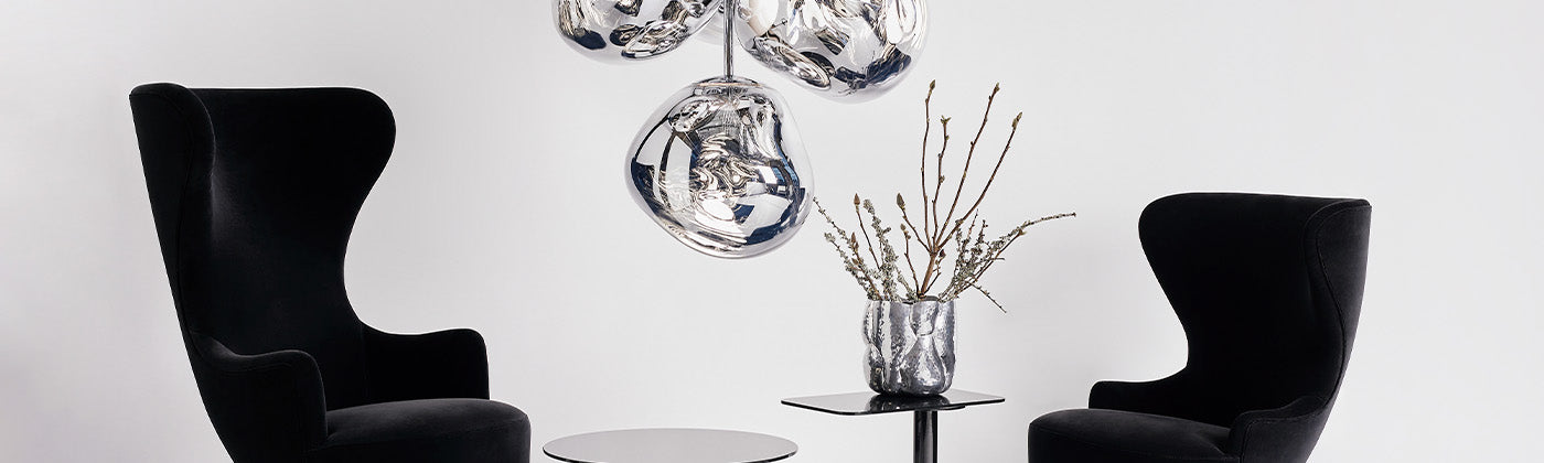 Melt lights are created through a process of blow moulding and vacuum metallisation to achieve melted orbs with abundant and unusual luminosity. Over several years we have worked with some forerunners of German engineering and manufacturing to develop these techniques and produce lamps that create the latest in reflectivity and transparency.