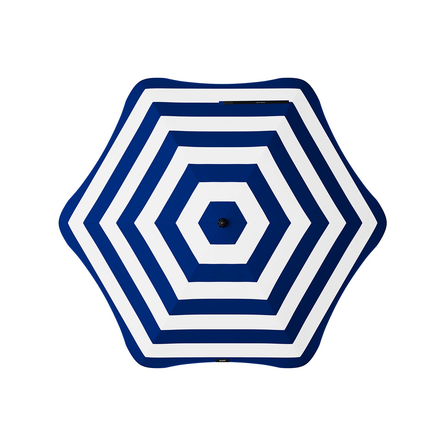 The BLUNT Beach Umbrella features an adjustable shaft with a 25° tilt mechanism, offering shade for all day sun. The tilt function can be used at any height setting.