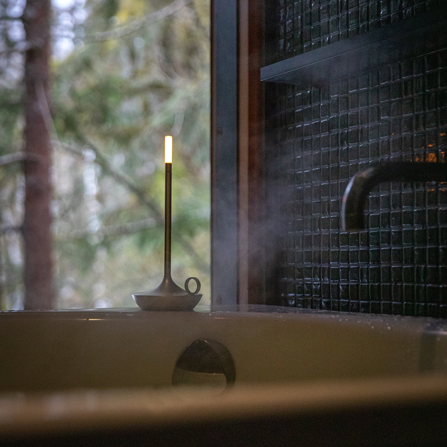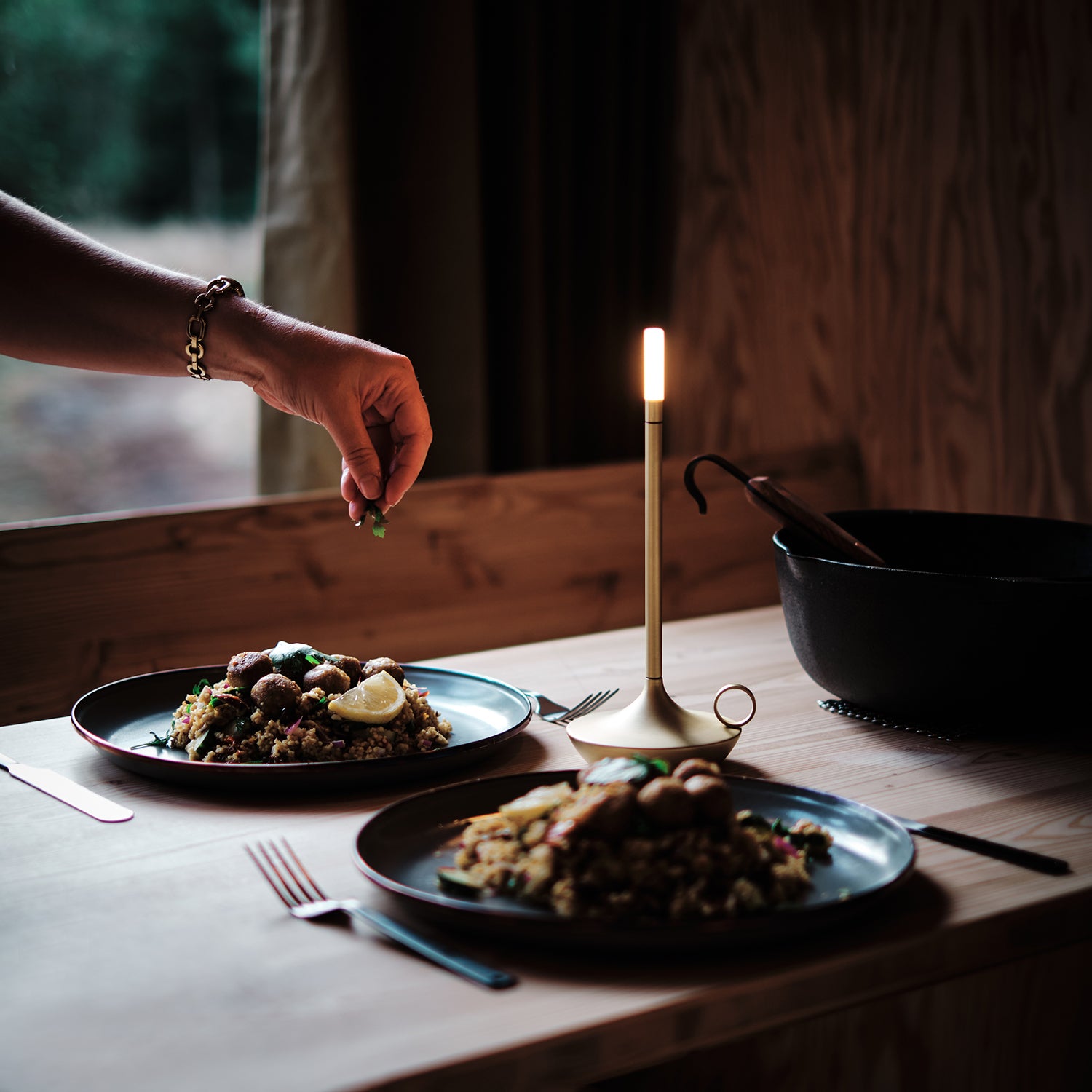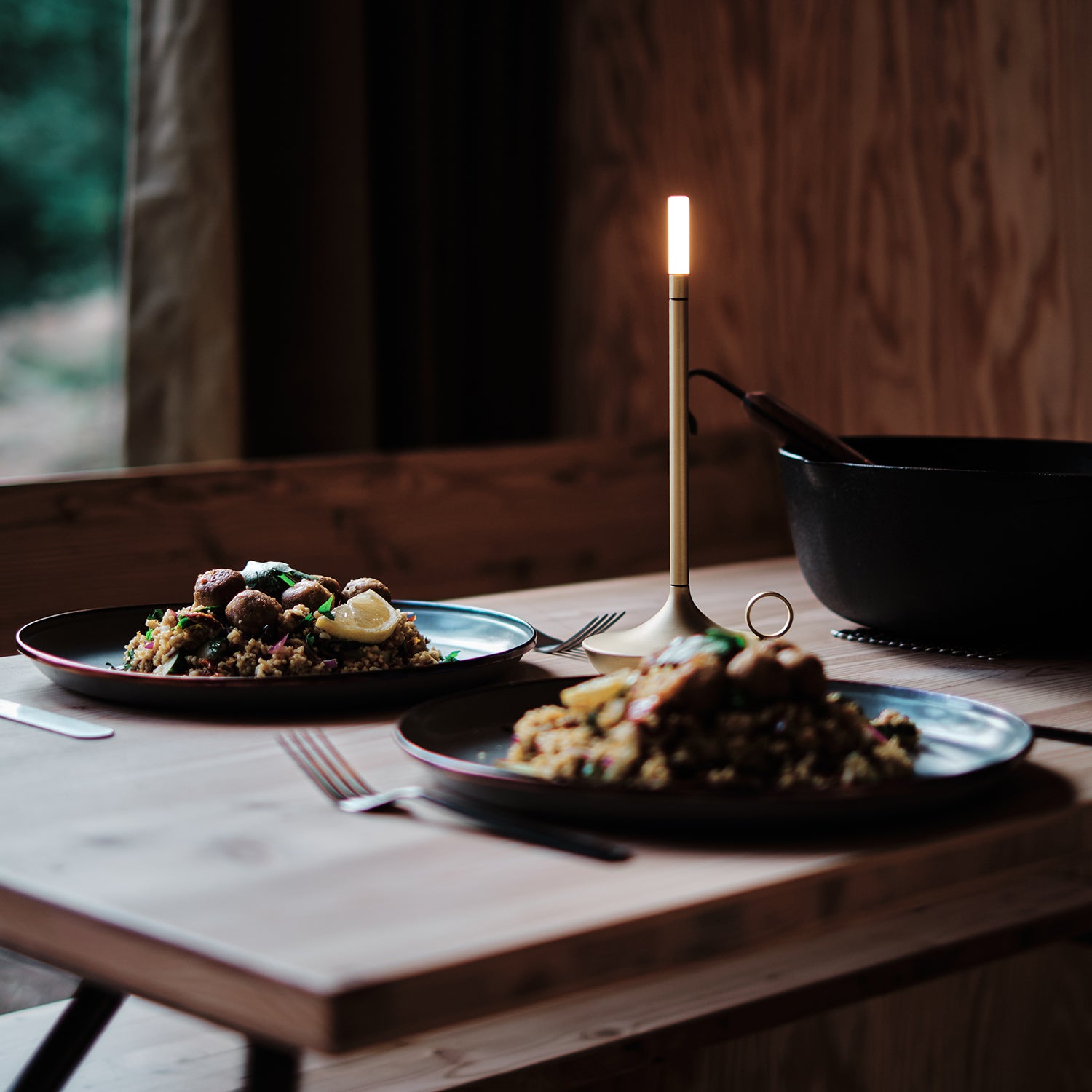 Wick is a portable, rechargeable table lamp designed to be an effortless companion offering the cosiness of candlelight with the ease and safety of an LED lamp. Wick is modern, tactile and fun to use.