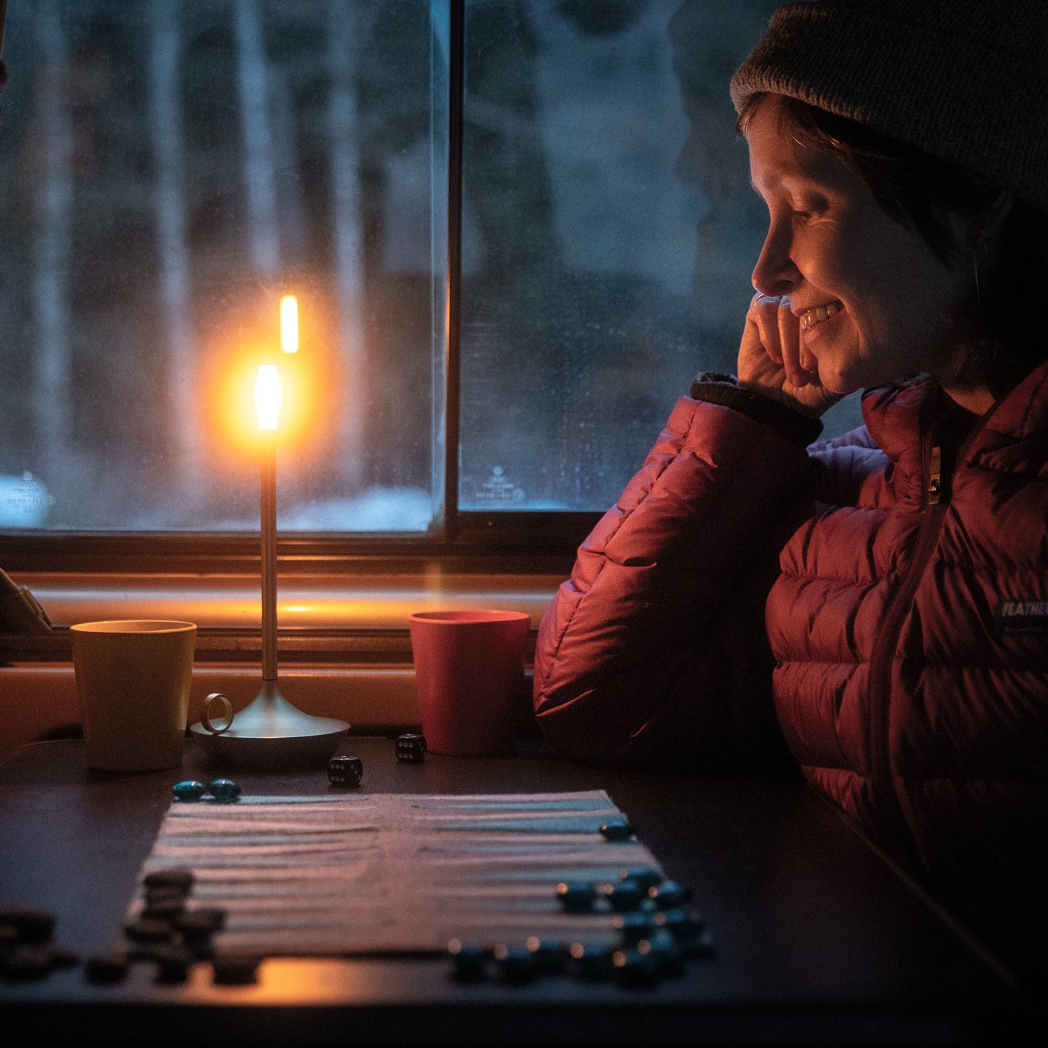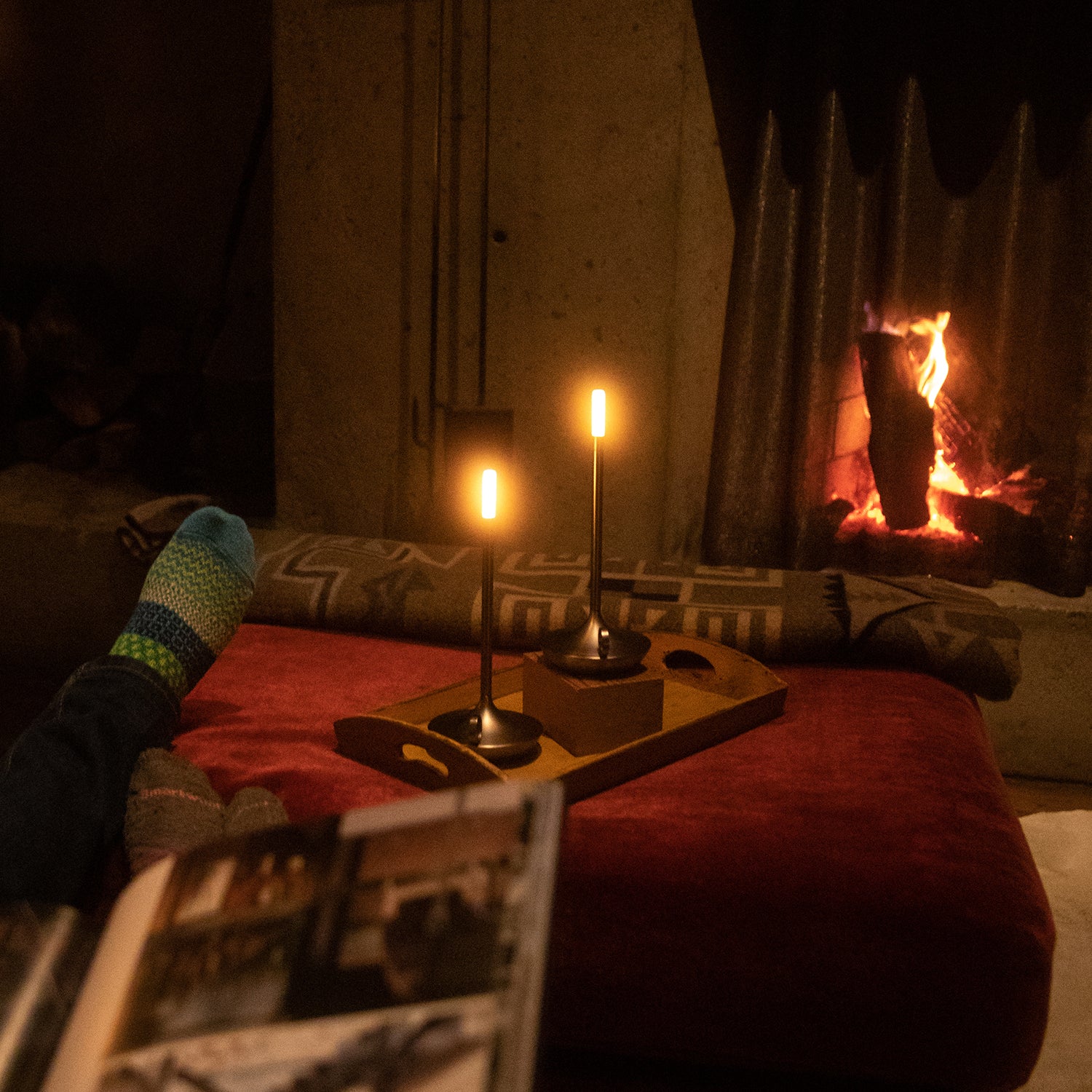 Wick’s energy-efficient design casts a warm glow in four brightness settings, including one emulating the soft flicker of candlelight. Simply tap the ring just below the fixture to change the settings. Depending on the brightness setting, the rechargeable fixture can last 12 to 150 hours on a single charge.