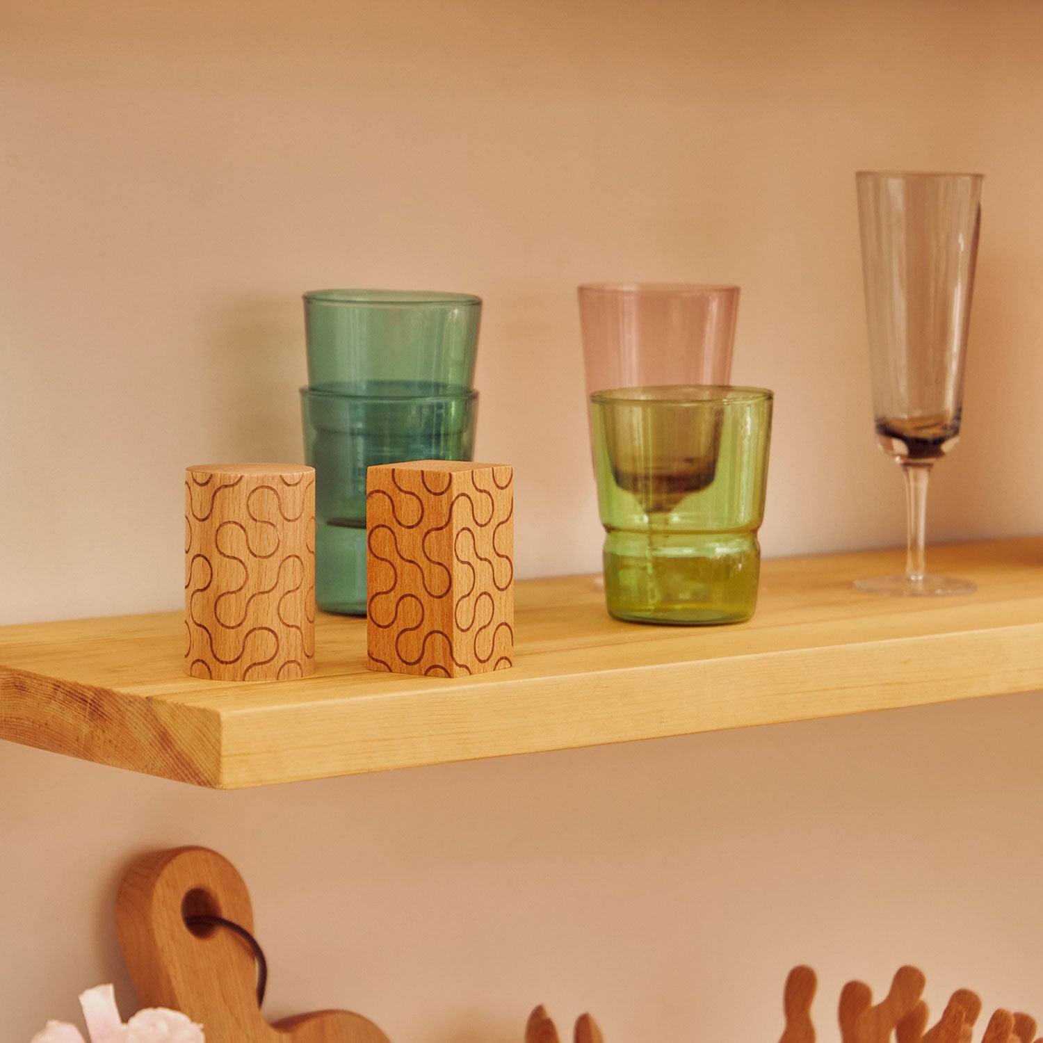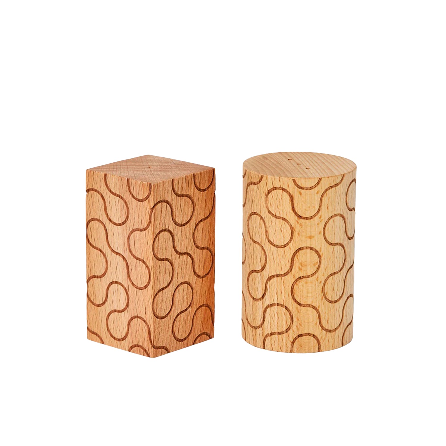 Taken straight out of Ellen Van Dusen’s home, this set of wooden salt and pepper shakers feature the same pattern that are custom carved into her own kitchen cabinets. Minimal in its design but still sporting that classic Dusen Dusen flavour, these will add a dash of something special to your kitchen or tabletop.