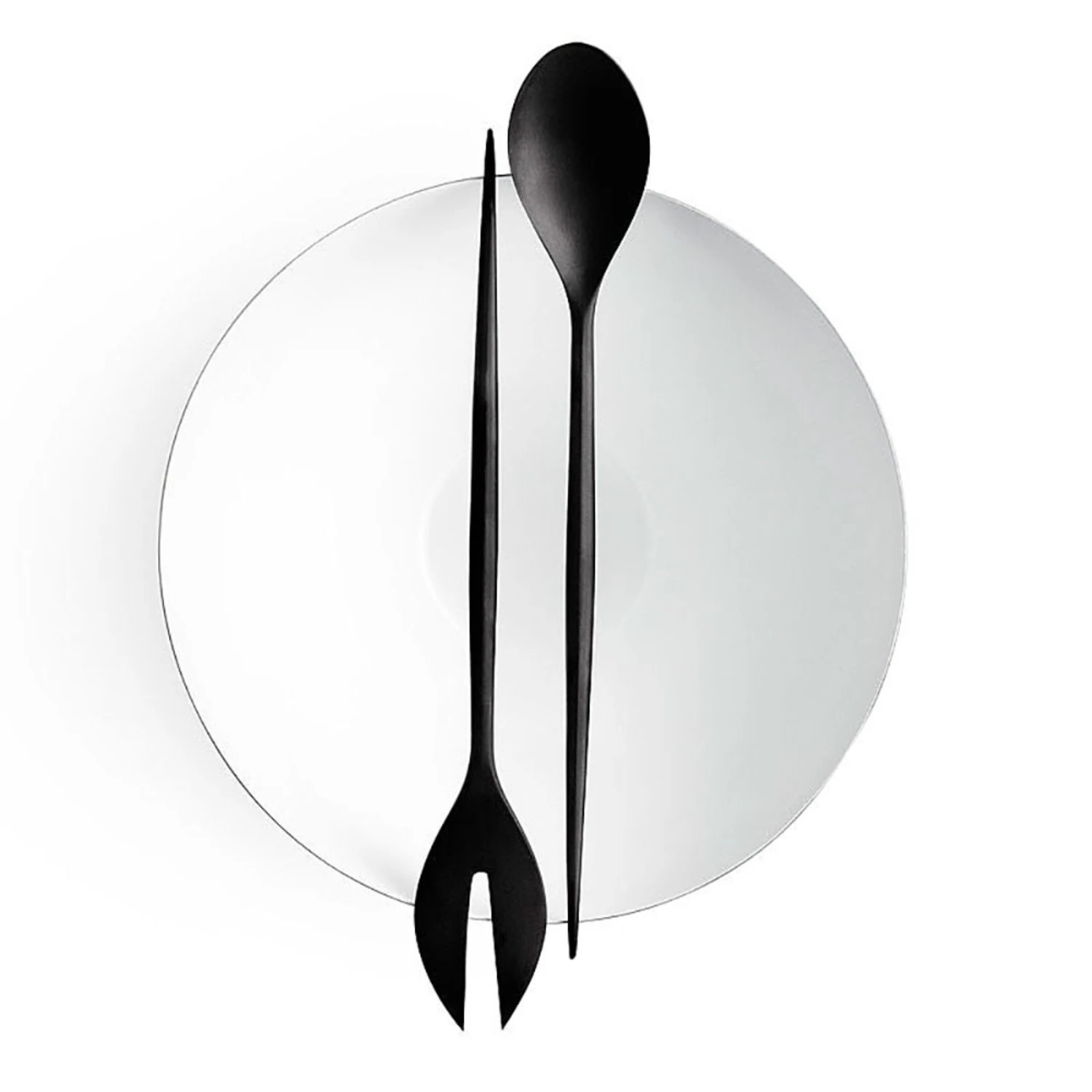 The melamine Krenit salad servers are inspired by the simple form language of the East. The salad server set's long pointed handles reflect the traditional chopsticks, and the bowl is the epitome of simple and clean expression.