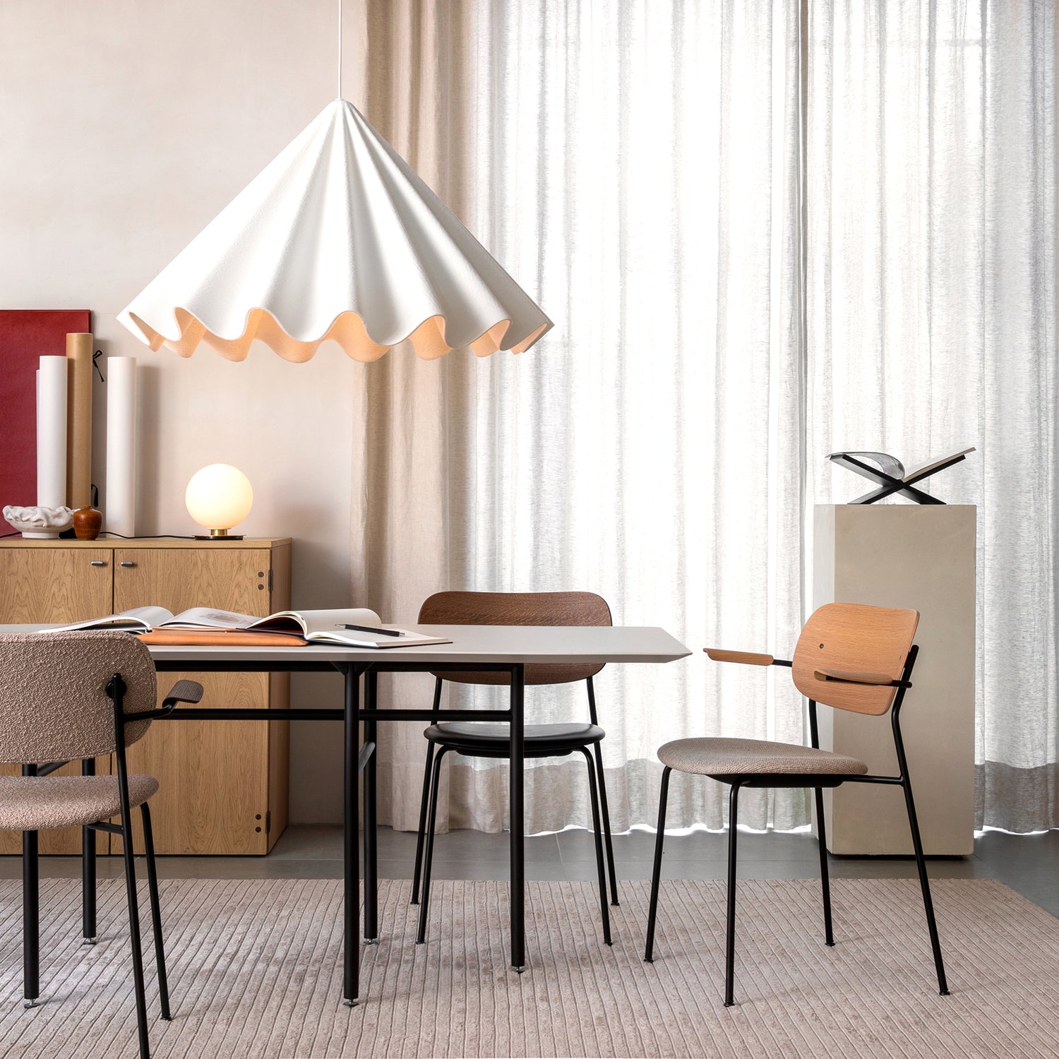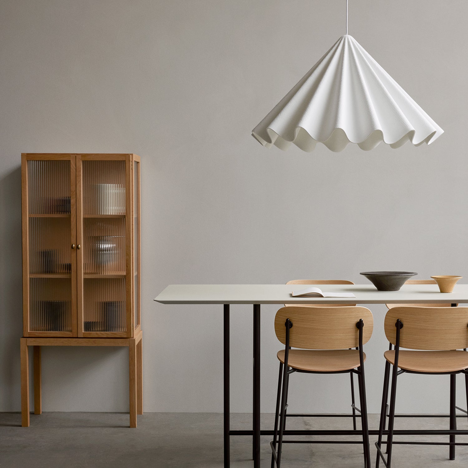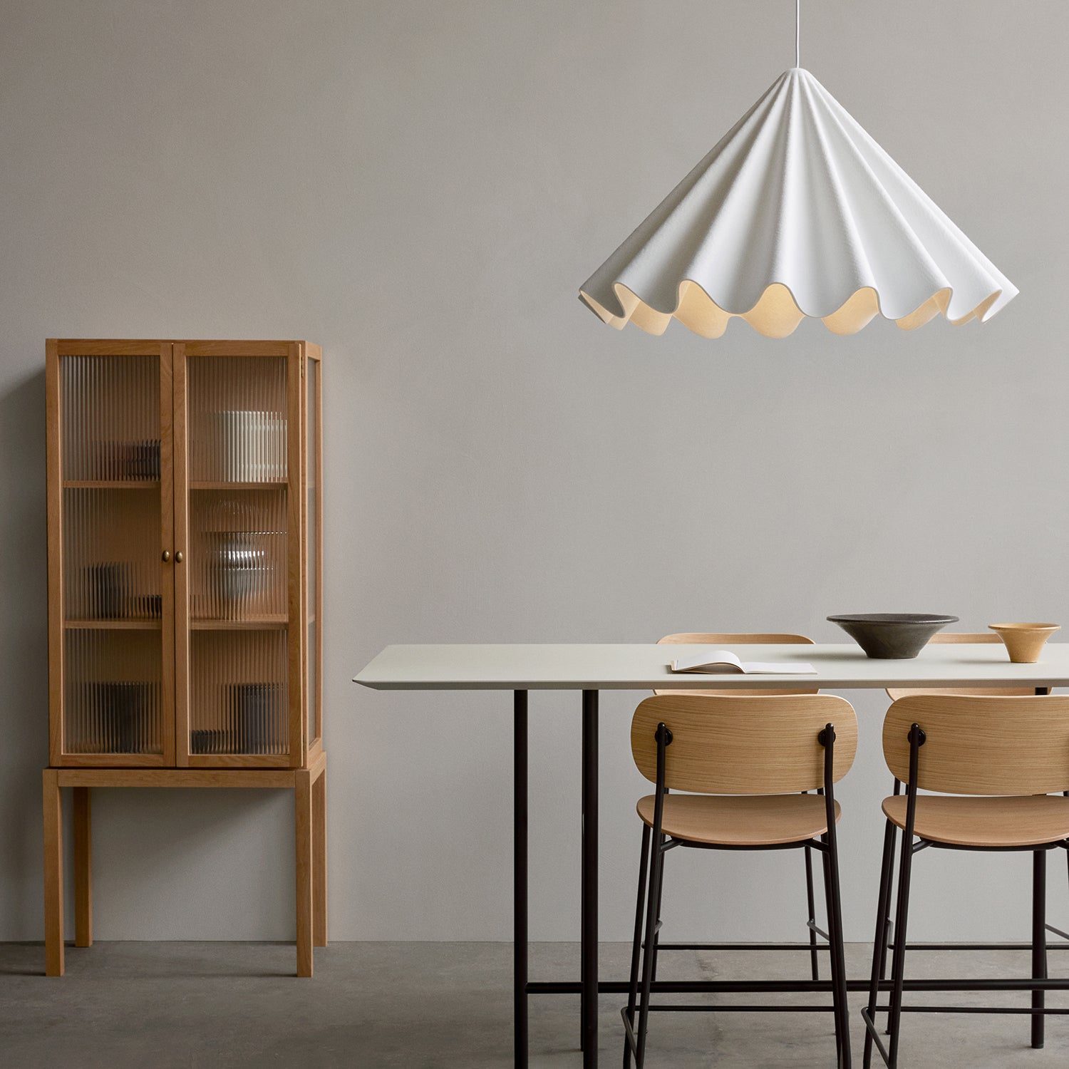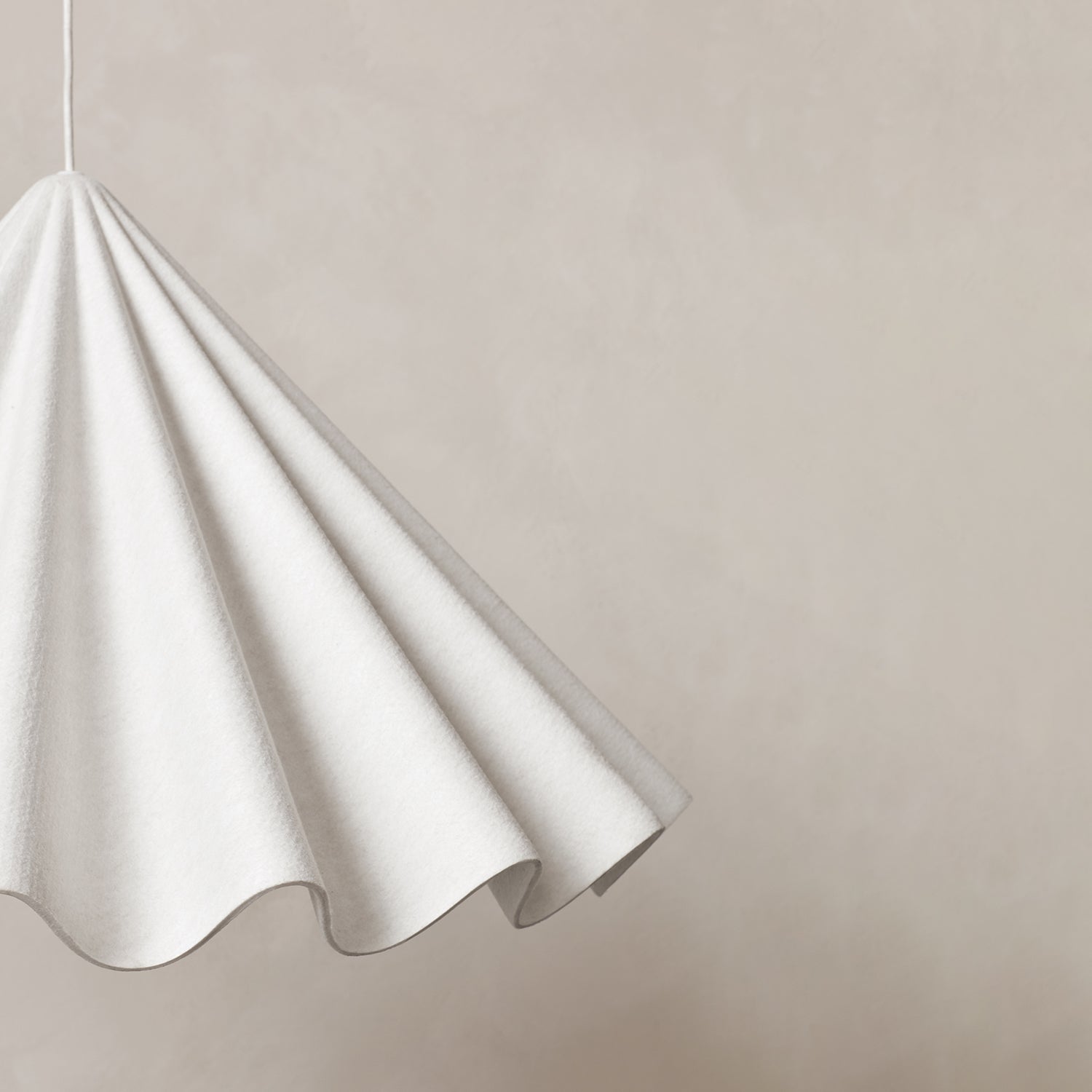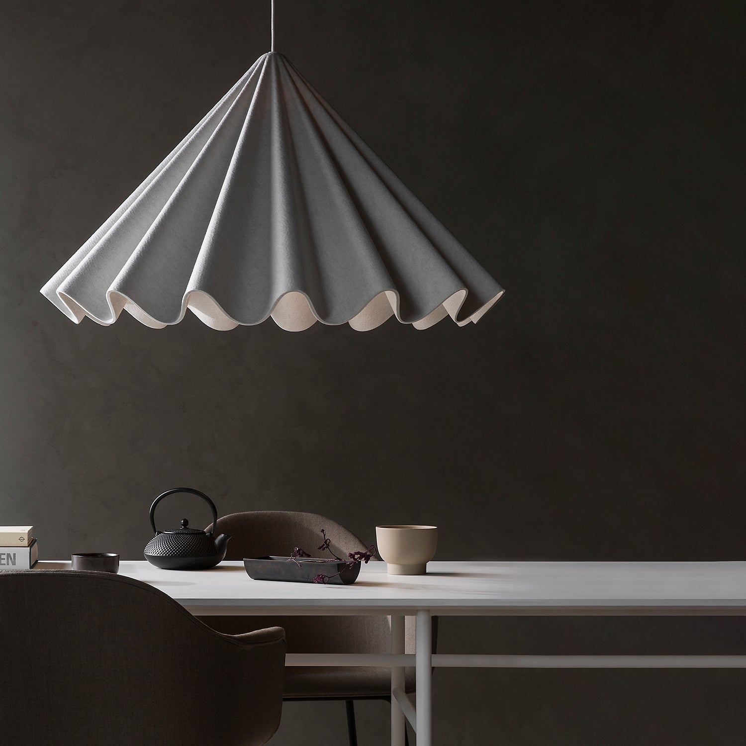 Design is an art of storytelling according to the Copenhagen-based duo Iskos-Berlin, and their Dancing Pendant for Audo Copenhagen puts that principle into practice. Exquisite, yet with a playful twist, the expressive statement lamp takes its design cues from a dancer’s pleated skirt caught flaring up mid-twirl - an idea that grows and finds its final form, precise and orderly yet soft and fluid. The sustainable lamp is crafted in tactile polyester felt, a recyclable material made from used plastic bottles.