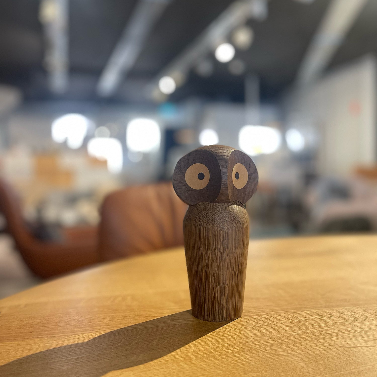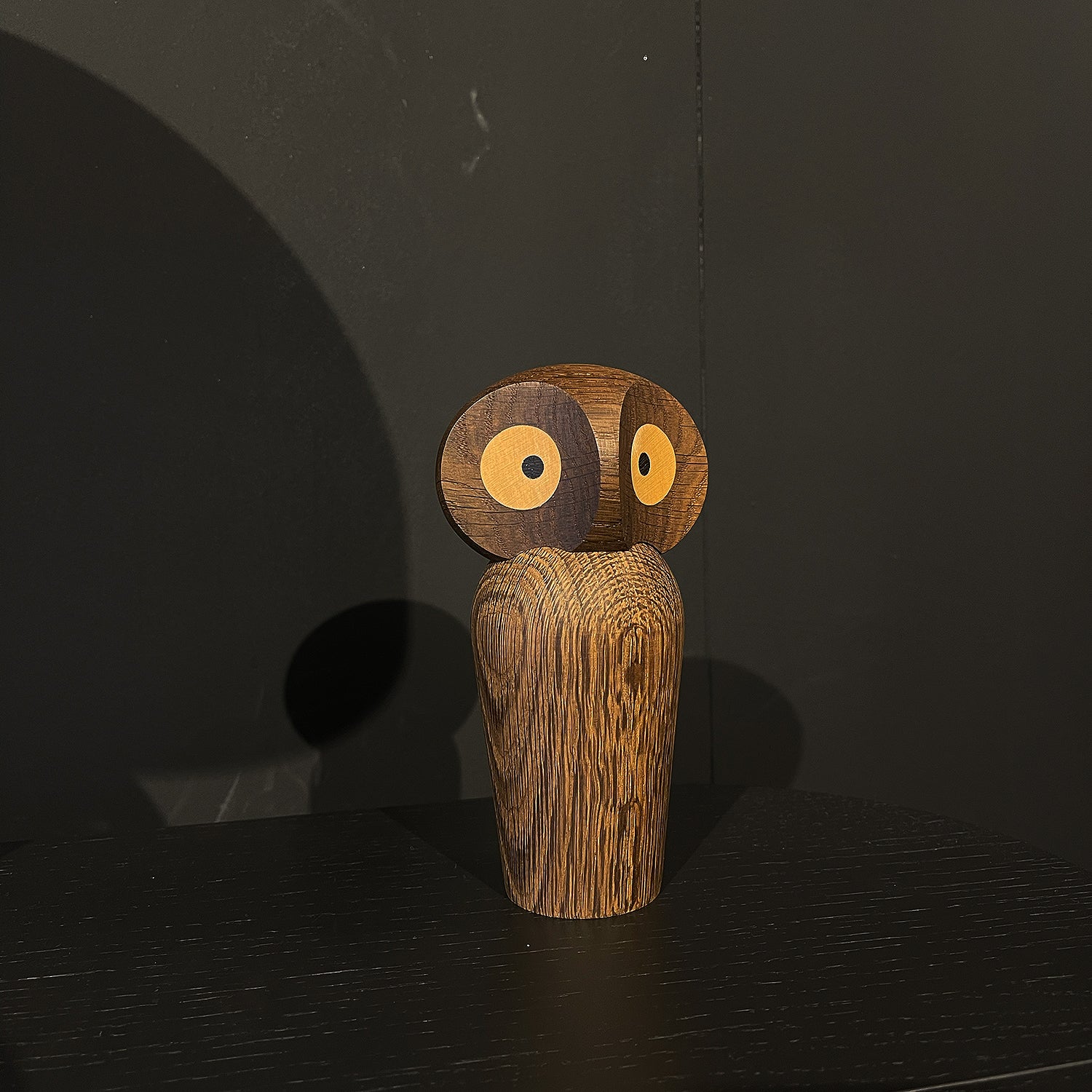 For years, Paul Anker Hansen made the Owl himself. Now it is still made by hand and with the same precision. The body is made of oak wood, and its eyes are inserted with maple and wenge wood. The head has a magnet attached, so it can move seamlessly in multiple directions to create various expressions.