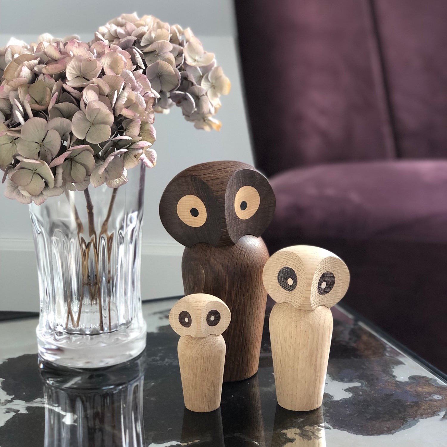 For years, Paul Anker Hansen made the Owl himself. Now it is still made by hand and with the same precision. The body is made of oak wood, and its eyes are inserted with maple and wenge wood. The head has a magnet attached, so it can move seamlessly in multiple directions to create various expressions.