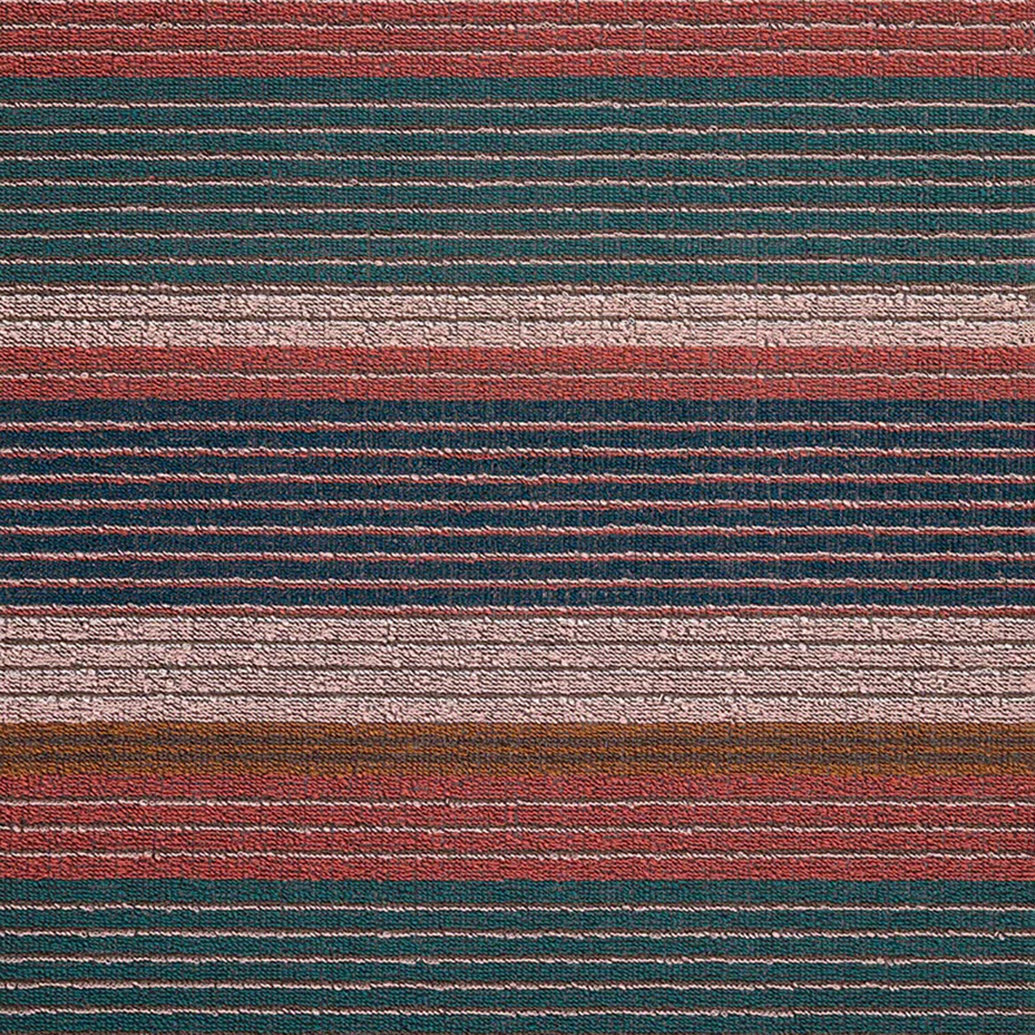 Dynamic lines meet a refined approach to colour in Pleat Stripe. Thoughtfully selected hues - more subtle than those of most mats - are sequenced in a play of high contrast and tonal harmony, creating a pattern that evokes the precision and dimension of finely pleated fabric. Good in all weather. Quick to dry.