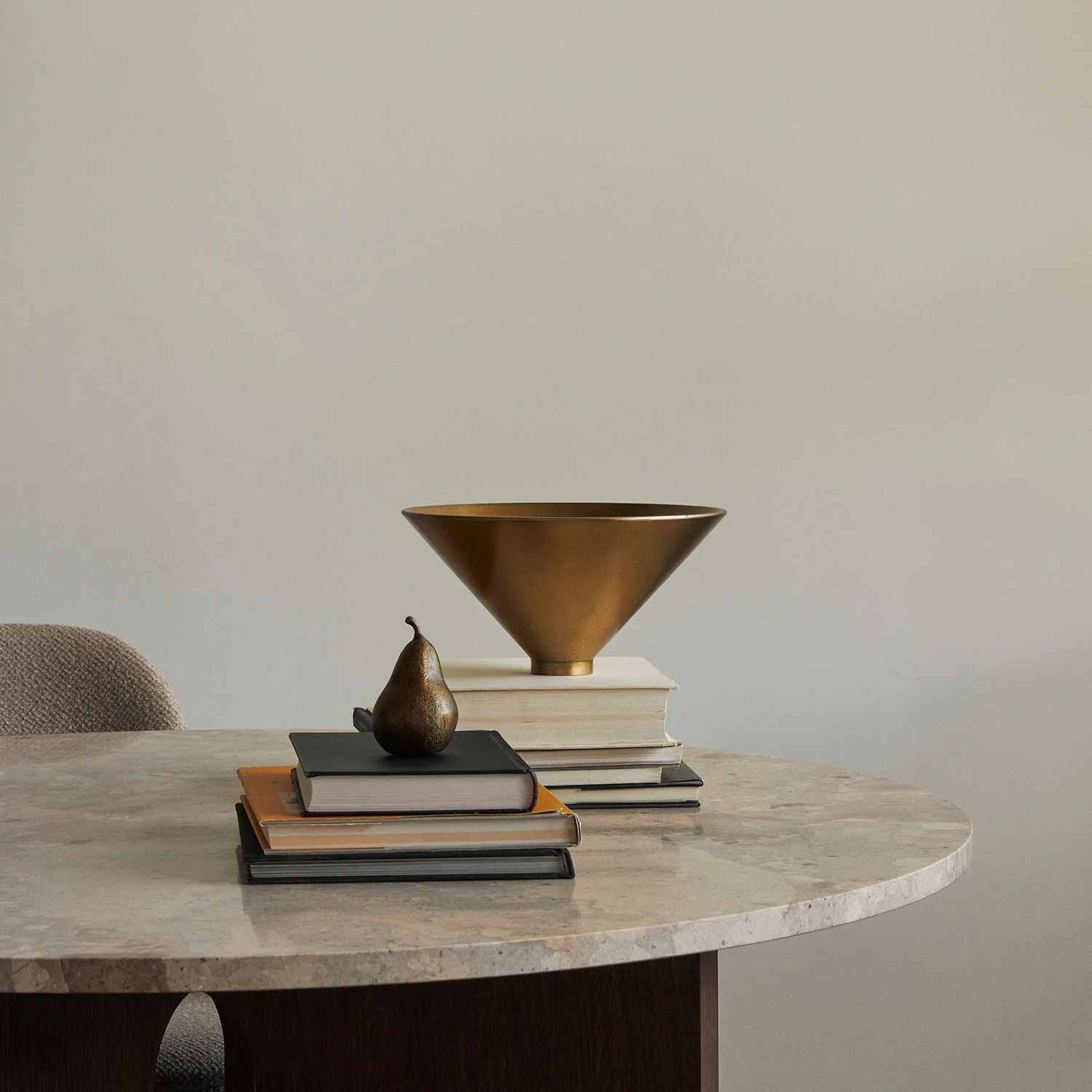 With its familiar feel, reminiscent of ancient vessels, the Taper bowl has a restrained look that lends itself to any setting. Designed by master stylist Colin King, the conical metal design features a brass finish that lends warmth to interiors. Versatile in use, it works equally well as a catch-all for small items as it does left unfilled as a decorative object.