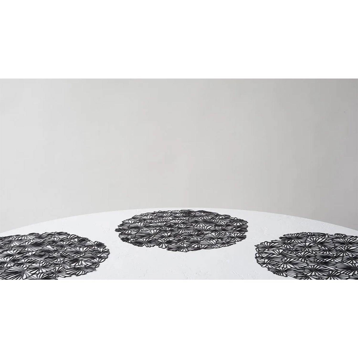 Dahlia extends Chilewich’s innovative moulded technique beyond the first circle of experimentation. Acting more like a charger than a placemat, plates will sit surrounded and enhanced by the open lace cutwork it exhibits.