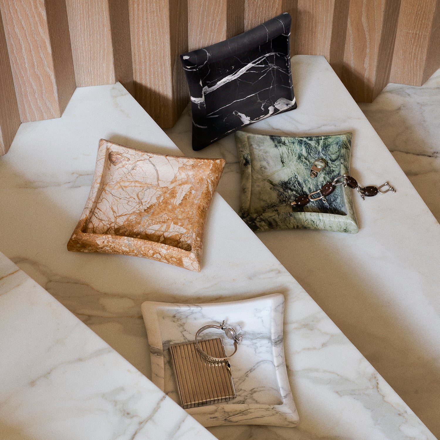 With its soft, rounded corners and a shallow profile, the Stella Bowl draws from celestial landscapes in both contour and materiality. A sculptural interpretation of the classic valet tray carved in marble, Stella is a refined essential that elevates the art of display.