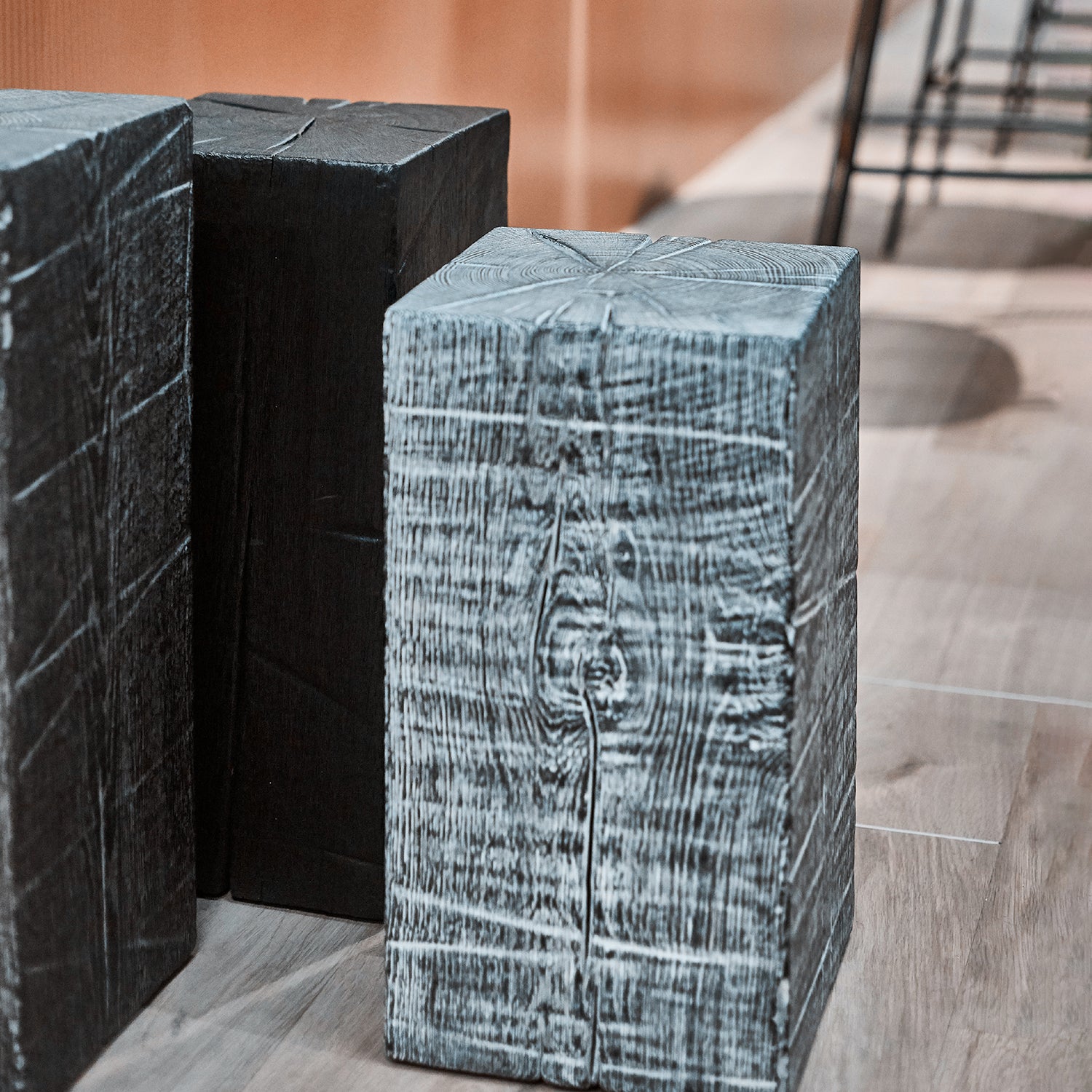Stefan Knopp only works with Austrian woods such as oak and ash. He uses fire and water to make them durable. This treatment gives the surfaces their extraordinary beauty.