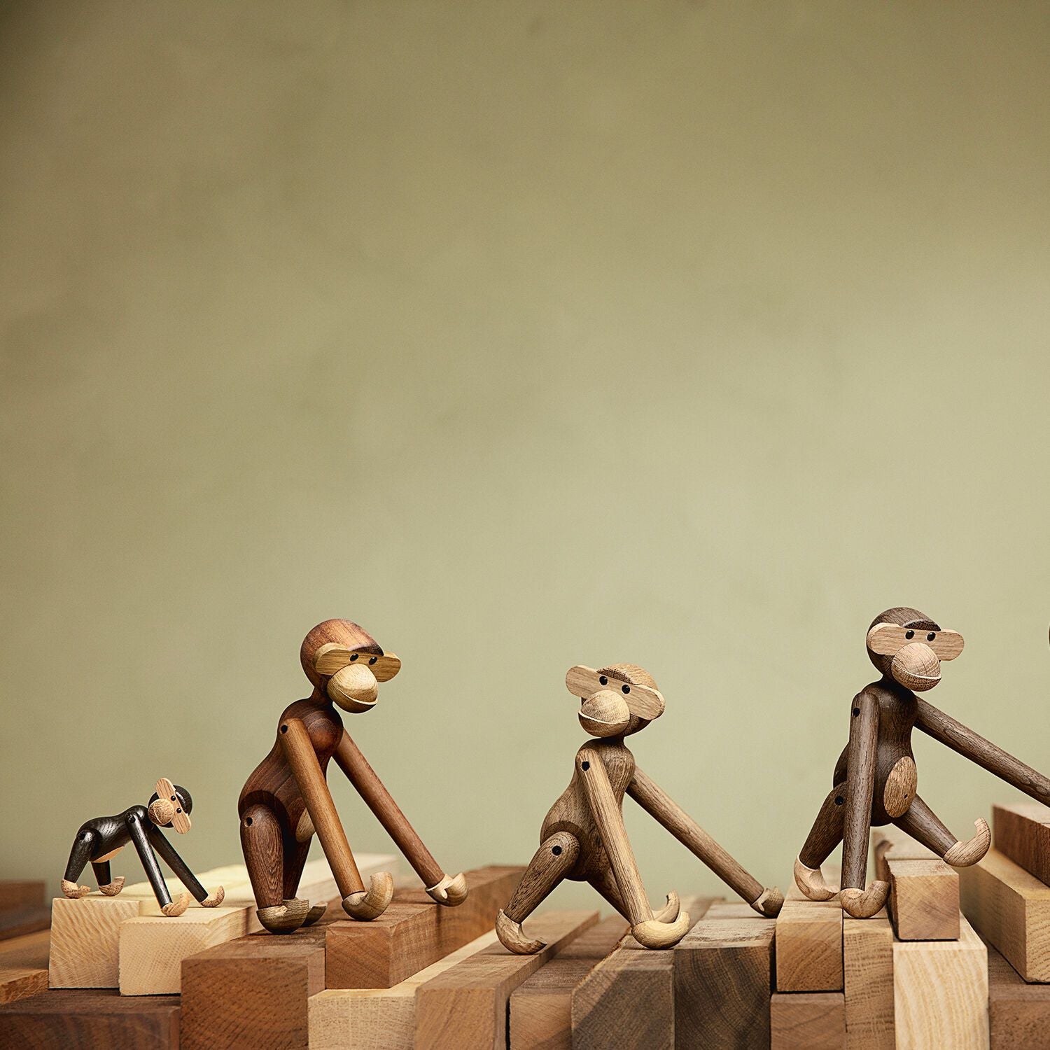 Kay Bojesen's 1951 Monkey took shape in Kay Bojesen's head as a coat hook, but ended up becoming a world-famous little wooden monkey. This version is made of smoked oak and natural oak, and will look great in the living room or a child's bedroom.