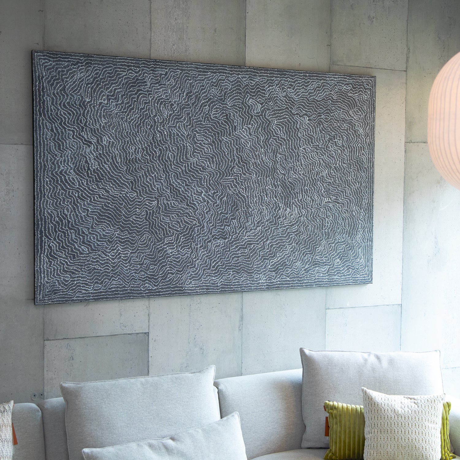 Lelita learnt both the stories passed down to her from her mother and her late father, painting “My Father’s Country" as well as “Bush Onion”, “Honey Ant Dreaming" and “Tali (Sandhills)”. Lelita is most recognised for her stunning, detailed depictions of Tali, which are the sacred sandhills seen throughout her Country.