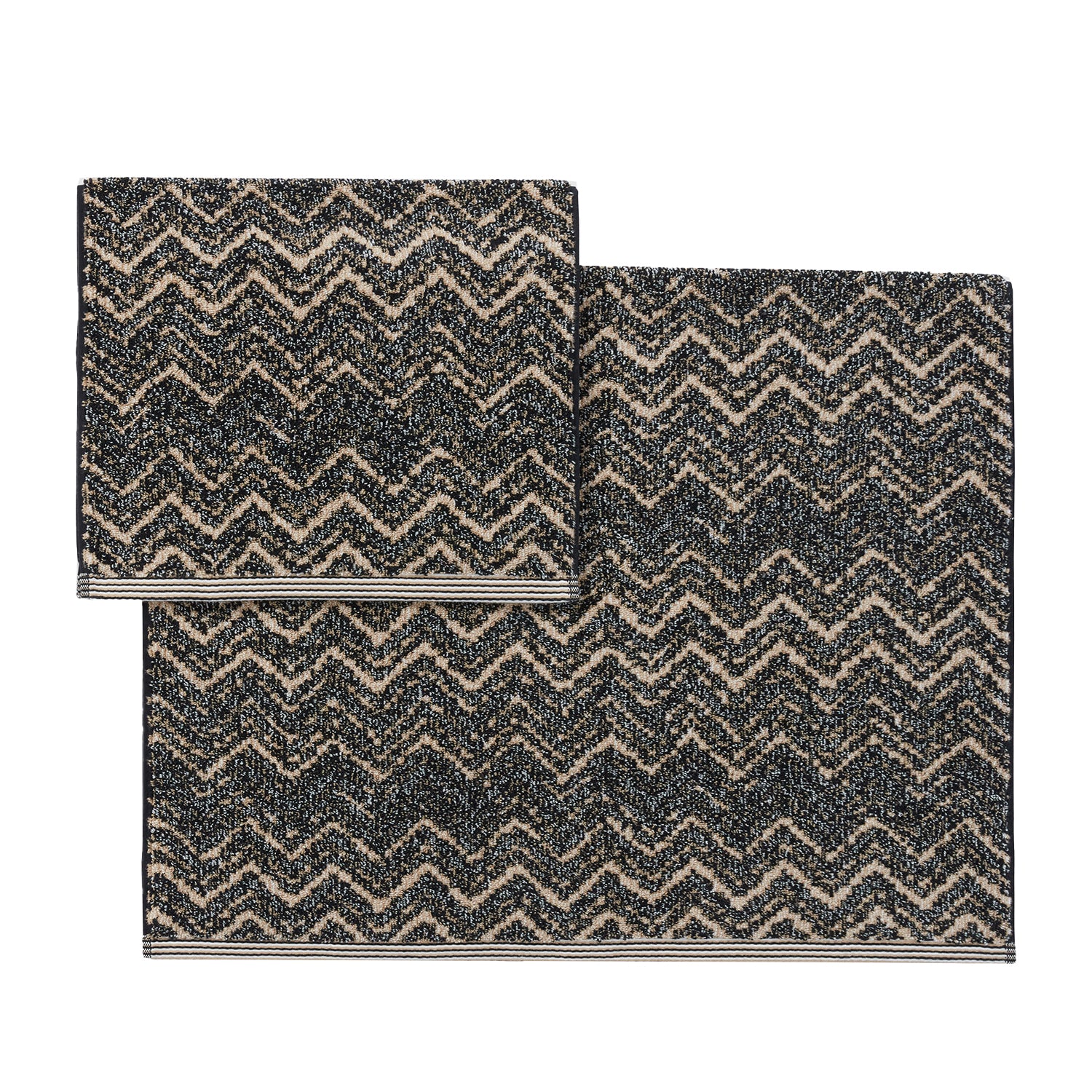 The Azul towel in cotton terry velour declares its belonging to the Missoni Home universe with its chevron pattern. Fantasy and colour give rhythm to home linen with a recognisable sense of style. Contrasting striped borders add a touch of sophistication and detail to the overall design, making this towel a distinctive decorative element.