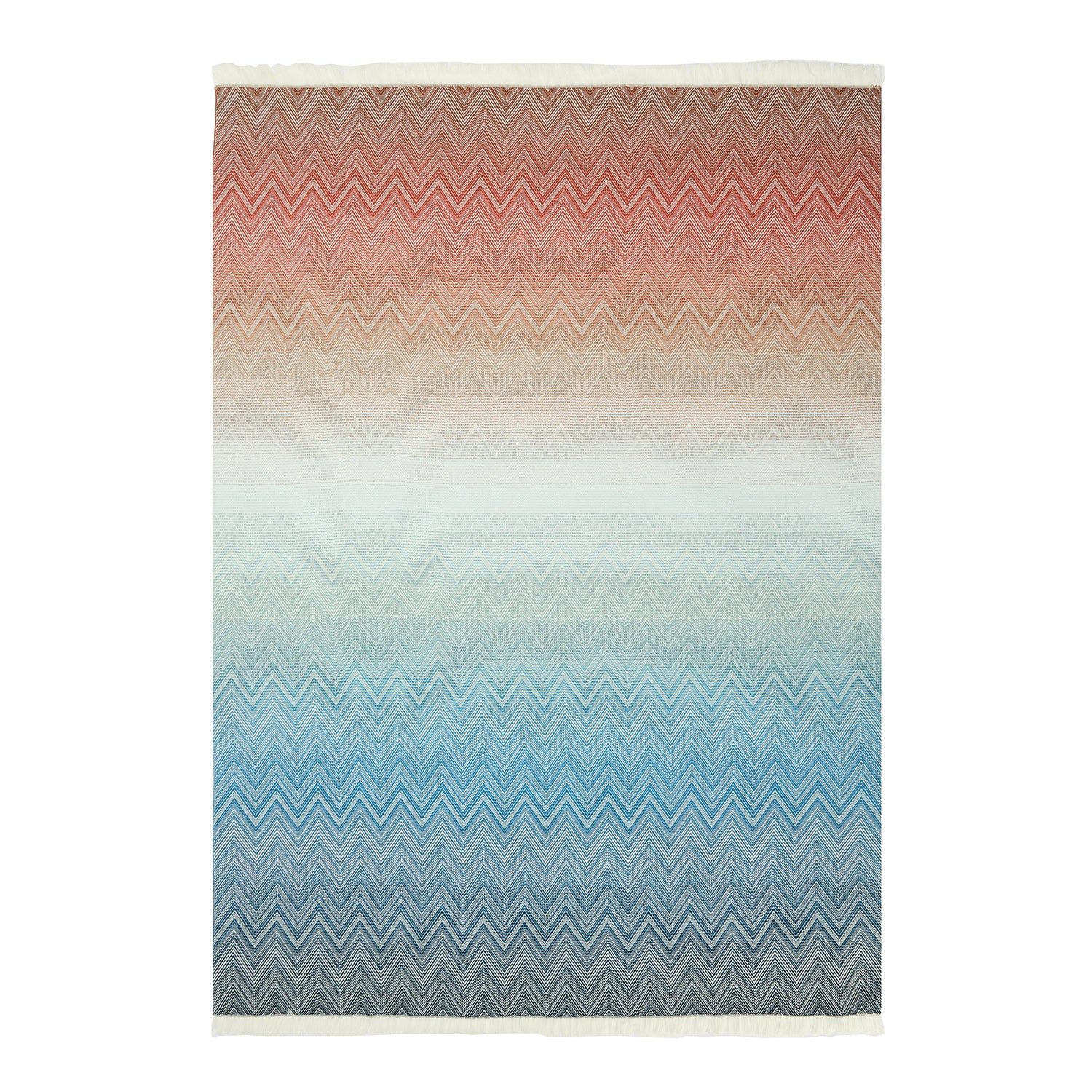 The Missoni Ciro throw brings a captivating interplay of colour and pattern to your living space, perfect for those who love design pieces with a sense of movement and artistry. Its jacquard-woven gradient zig zag pattern softly transitions across tones, creating a flowing, gradient effect that draws the eye and invites touch.