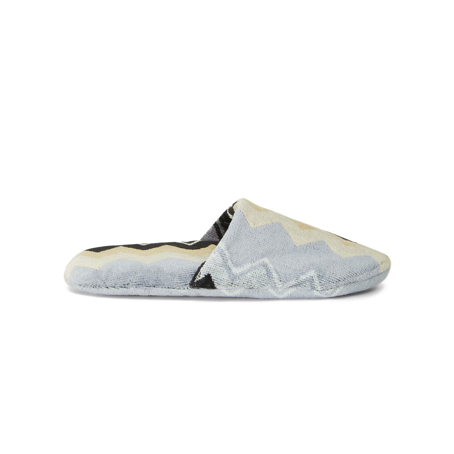Relaxing in style is the prerogative of the Giacomo slippers by Missoni Home. Made of soft cotton terry, they feature a charming zigzag pattern that adds a distinctive touch of style. Completed by the logo label, the slippers are the perfect accessory for Missoni's signature home outfit.