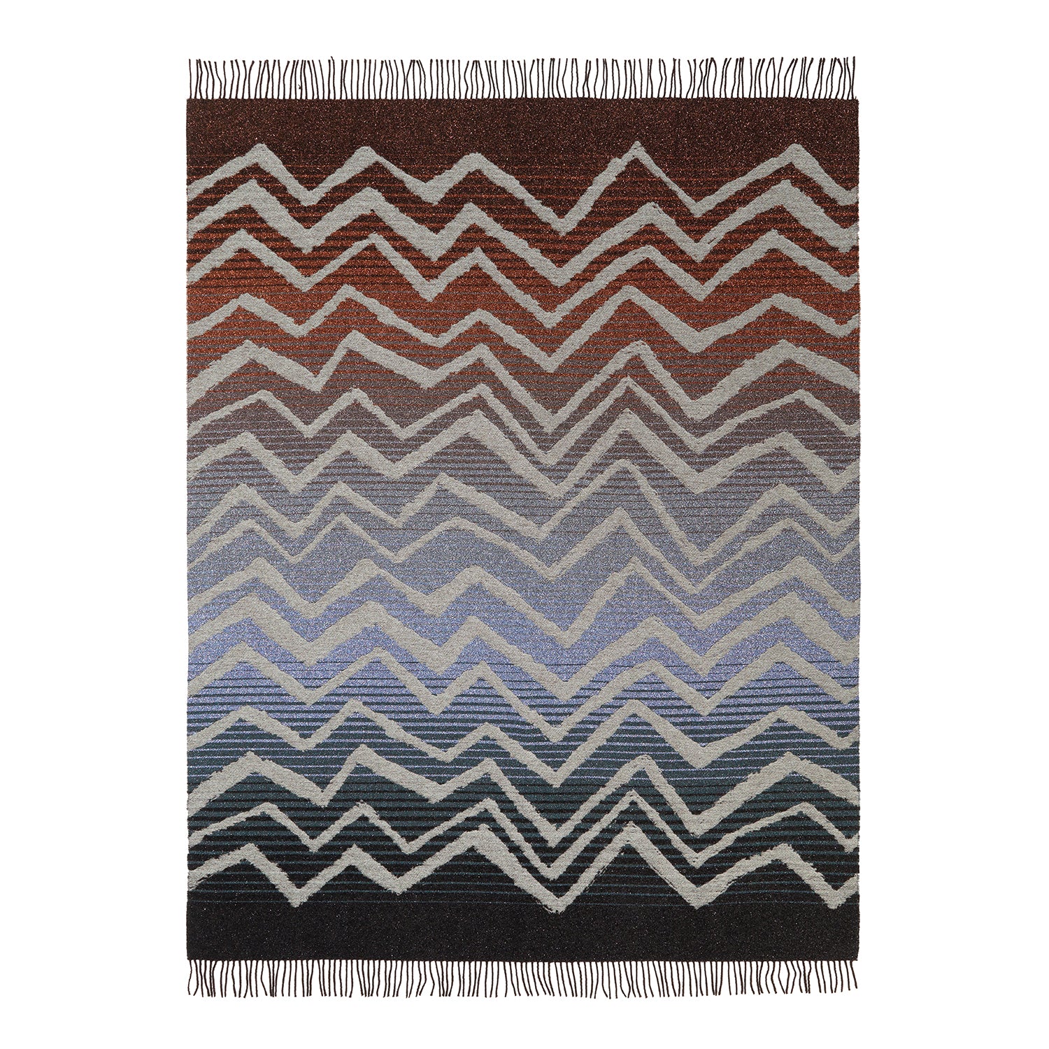 Wool blend throw with zig zag pattern, metallic detail and fringed edges. It is a perfect home accessory to warm up any room in pure Missoni style.