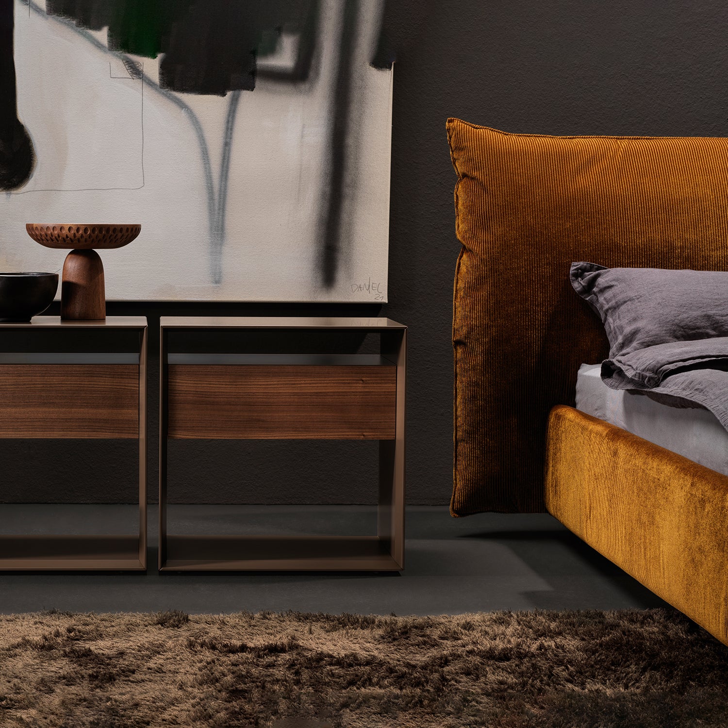 The Rose bed features softly padded, adjustable backrests that let you sit upright for reading or recline for relaxation. Its concealed legs create a floating effect, while removable upholstery and covers make care effortless.