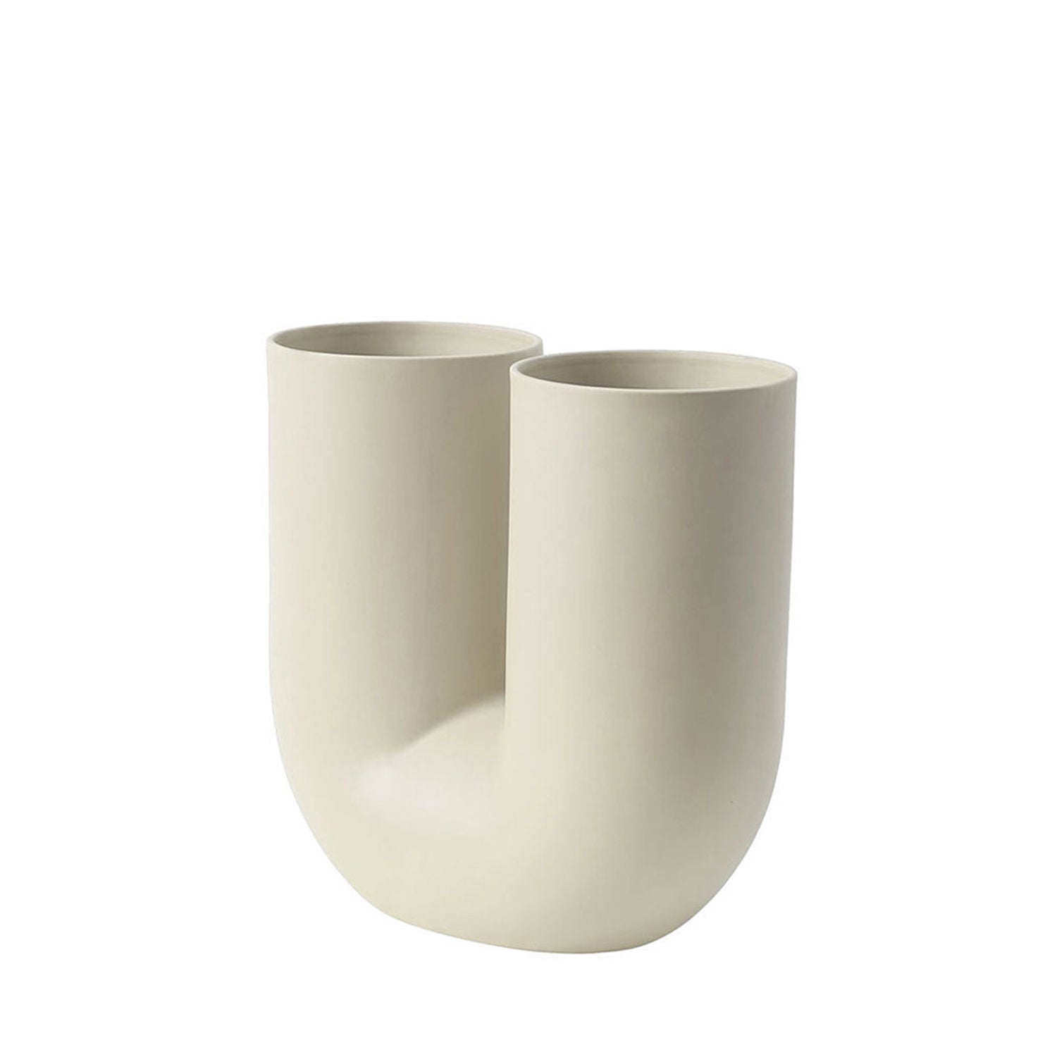 The Kink Vase brings a contemporary form to the archetypal flower vase through traditional craftsmanship and playful design language. With its double opening, the Kink Vase adds a sculptural sentiment to the room, even when not in use. The vase's satin-glazed finish provides a refined, tactile feel that enhances its contemporary design.