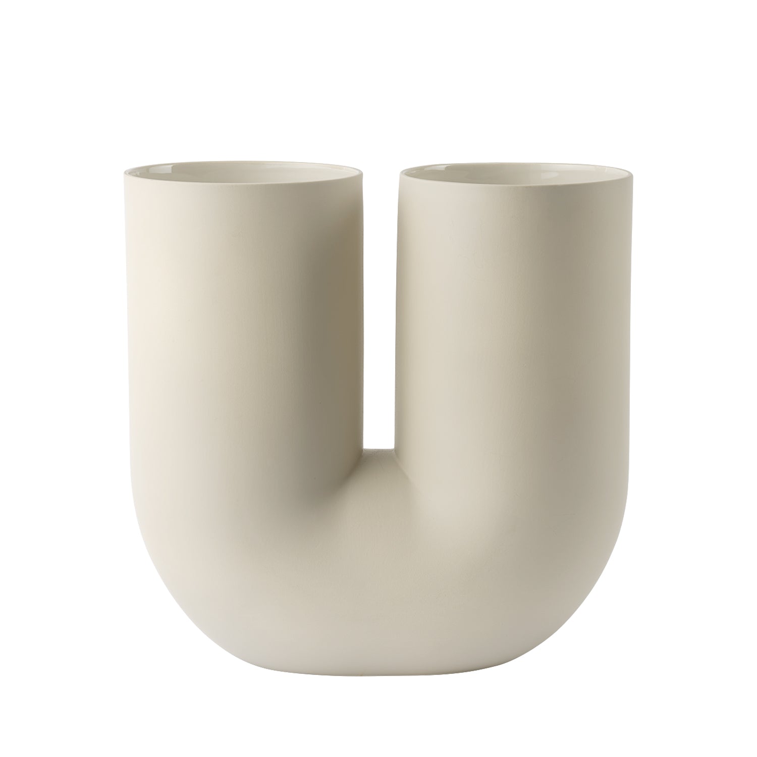 The Kink Vase brings a contemporary form to the archetypal flower vase through traditional craftsmanship and playful design language. With its double opening, the Kink Vase adds a sculptural sentiment to the room, even when not in use. The vase's satin-glazed finish provides a refined, tactile feel that enhances its contemporary design.