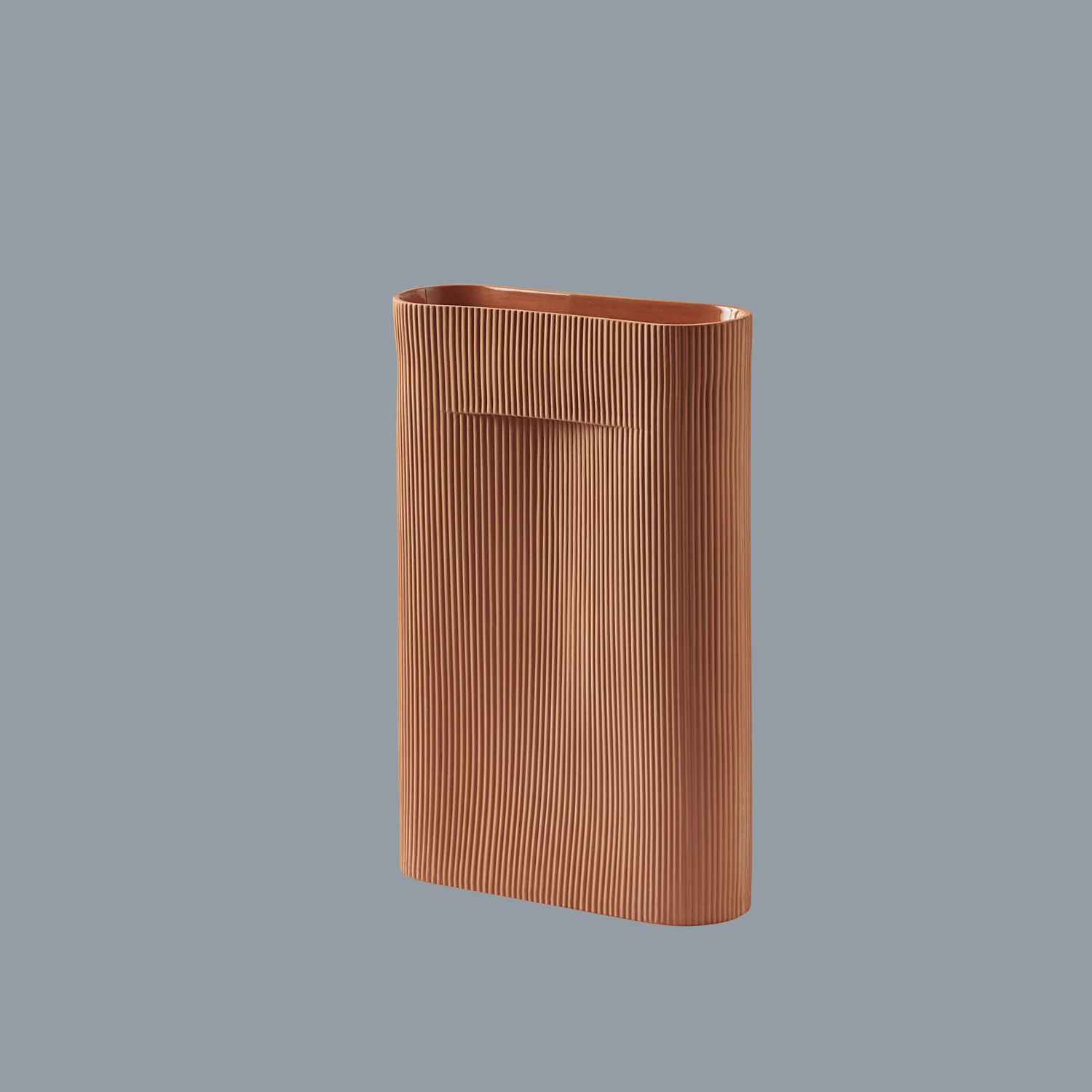 The Ridge Vase presents a new way to display flowers through its sculptural expression along with an artful character when not in use. The design features added functionality through its refined dent, allowing flowers to stand upright while also working as a subtle handle when moving the vase from one room to another.