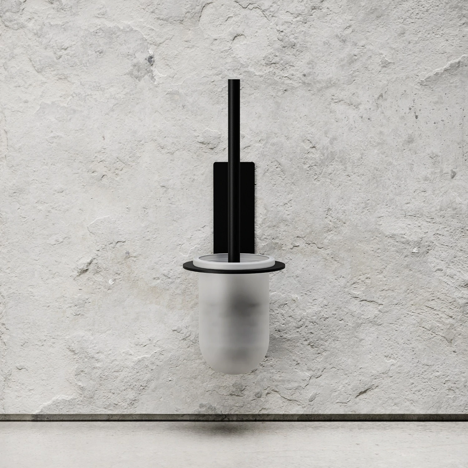 Functional and minimalistic toilet brush made of powder coated stainless steel. It is possible to replace the brush head, and furthermore it is easy to clean the glass cup.