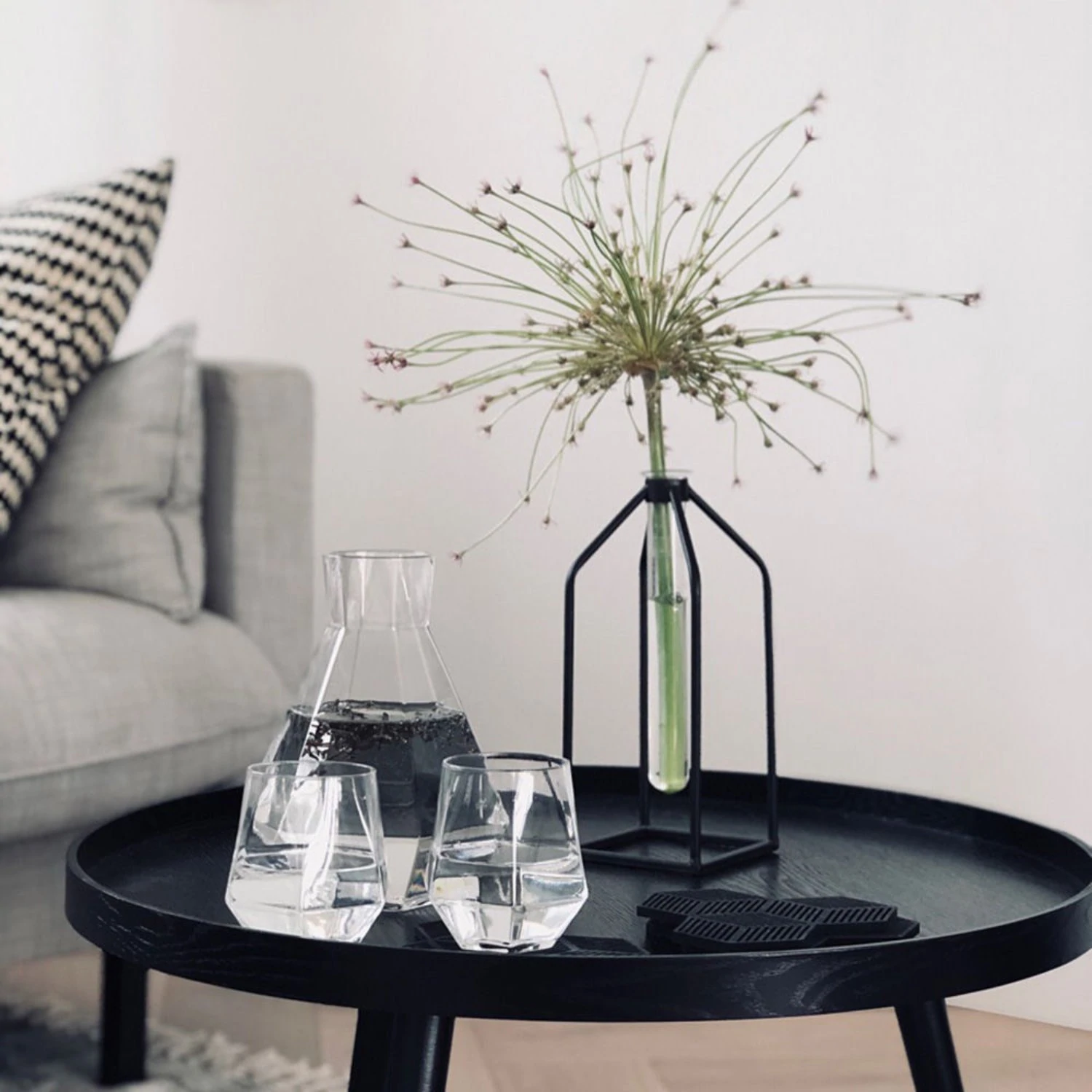 The faceted edges allow the carafe or glasses to sit in various ways on the table. The Rare Carafe also makes an exquisite vase. Carafe and glasses are sold separately.