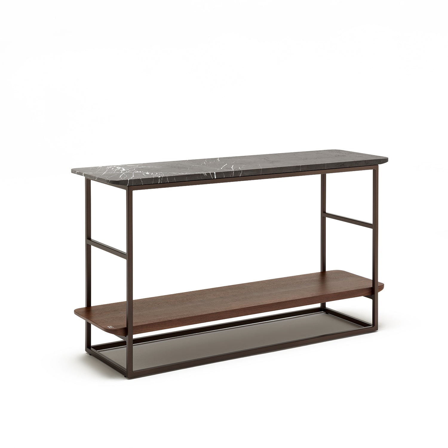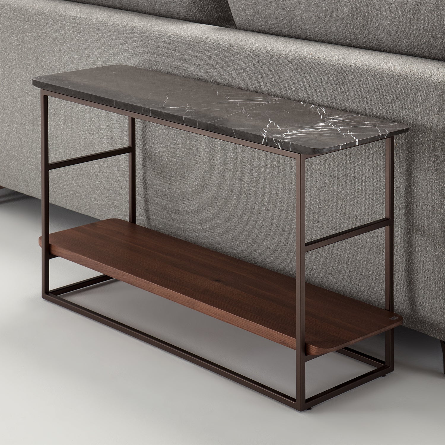 rolf benz | 987 coffee table | stone graphite brown + american walnut + marrone metallic frame