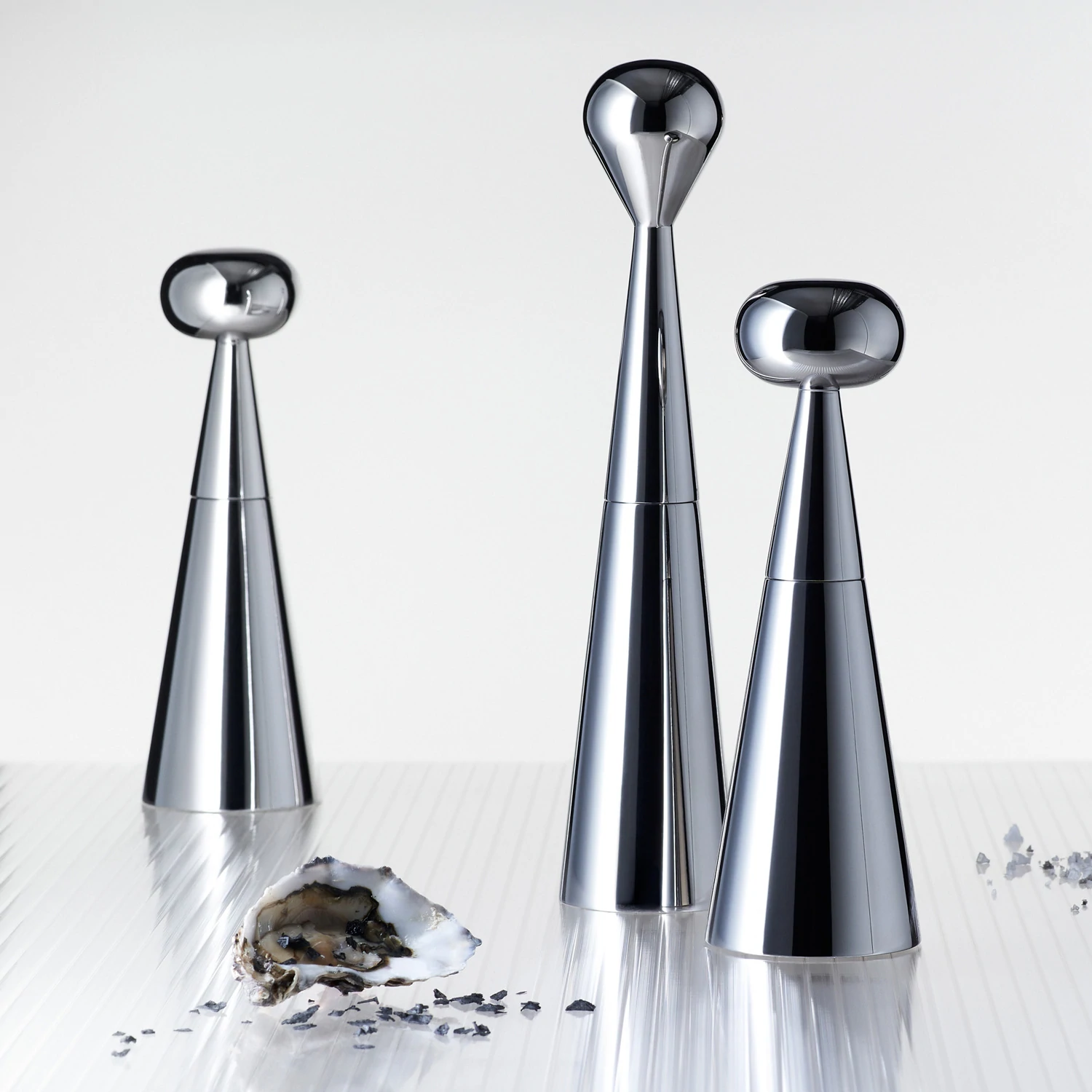 The Mill grinder has expressive handles and a sleek conical silhouette made of stainless steel. Created with longevity in mind, the vessel is designed with a robust mechanism that has been developed by experts. The stainless steel finish allows the grinder to be easily cleaned, and meets catering quality standards.